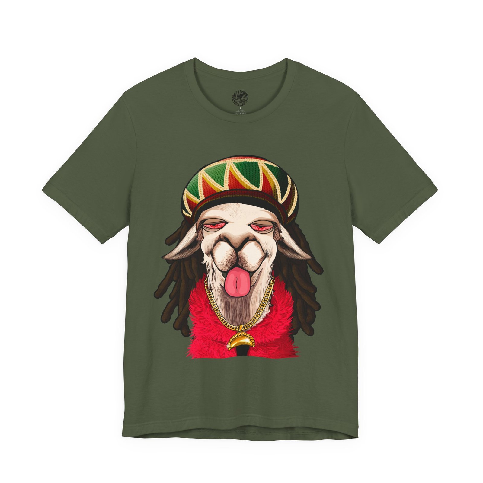 We print this piece of history on premium combed ring-spun cotton at a lightweight 4.2 oz/yd2. Retail fit with a crew neckline and side seams for shape. As a result, it survives the kind of nights Goodshit inspires. Available in Natural and Military Green, sizes S through 2XL. Machine wash cold. Tumble dry low. Above all, this llama is a good time with bad consequences.