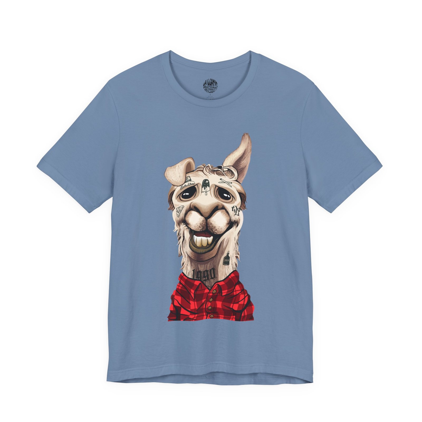 We print this piece of history on premium combed ring-spun cotton at a lightweight 4.2 oz/yd2. Retail fit with a crew neckline and side seams for shape. As a result, it’s as comfortable as a time when people could take a joke. Available in Dark Grey and Steel Blue, sizes S through 2XL. Machine wash cold. Tumble dry low. Above all, this llama doesn’t rewind for anyone.