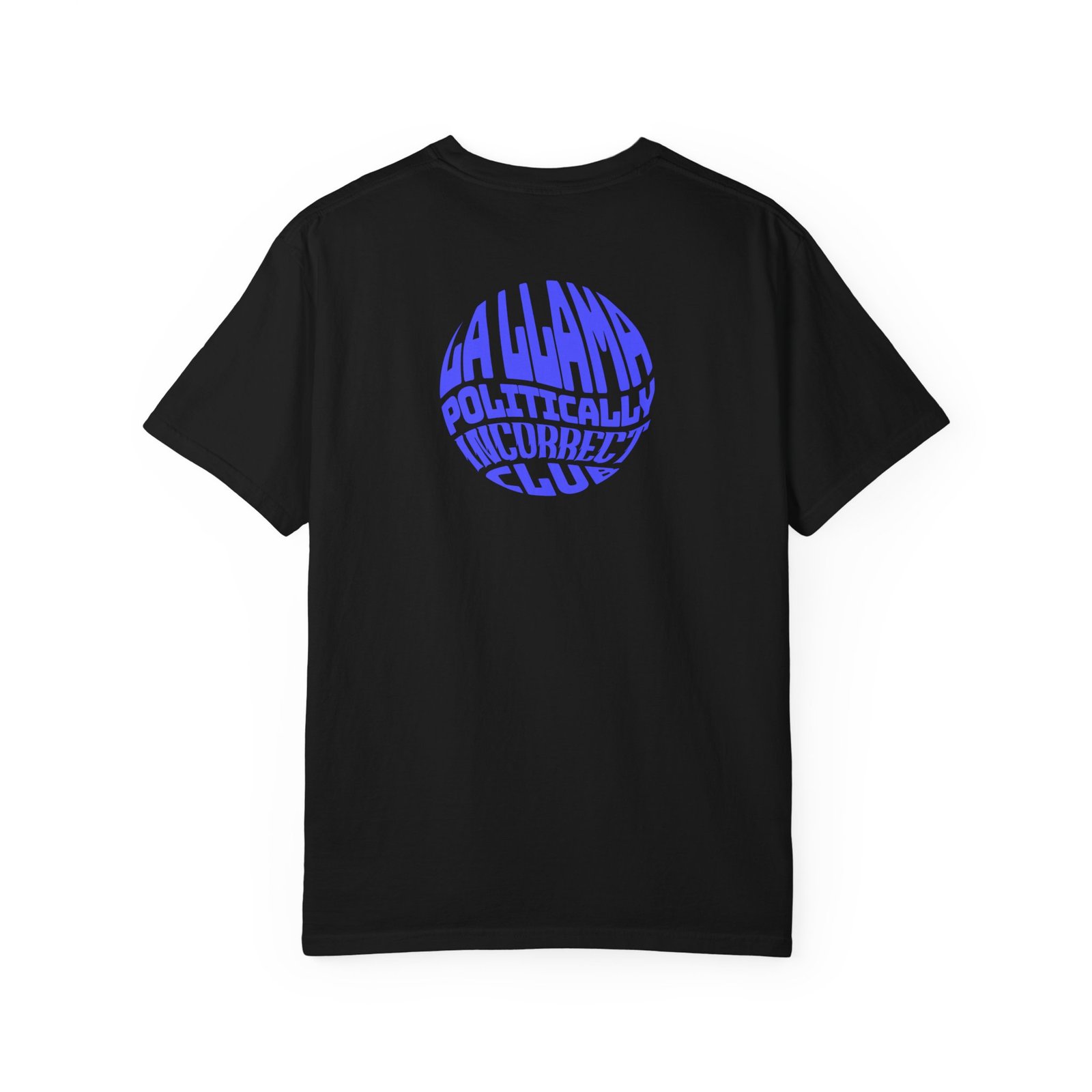 An homage to a rockstar era when life was a tad less politically correct. This heavyweight, garment-dyed tee brings retro metal energy into everyday wear. The front’s electric-blue artwork — a charging, stylized llama framed by bolts of lightning and the bold headline “Revive the Lightning” — feels loud and alive without shouting. On the back, a circular typographic badge in violet-blue reads like a secret club insignia, giving the shirt an insider vibe. The fabric is soft from post-construction dyeing and wears in with each wash, taking on a lived-in character while keeping that dense, structured drape.