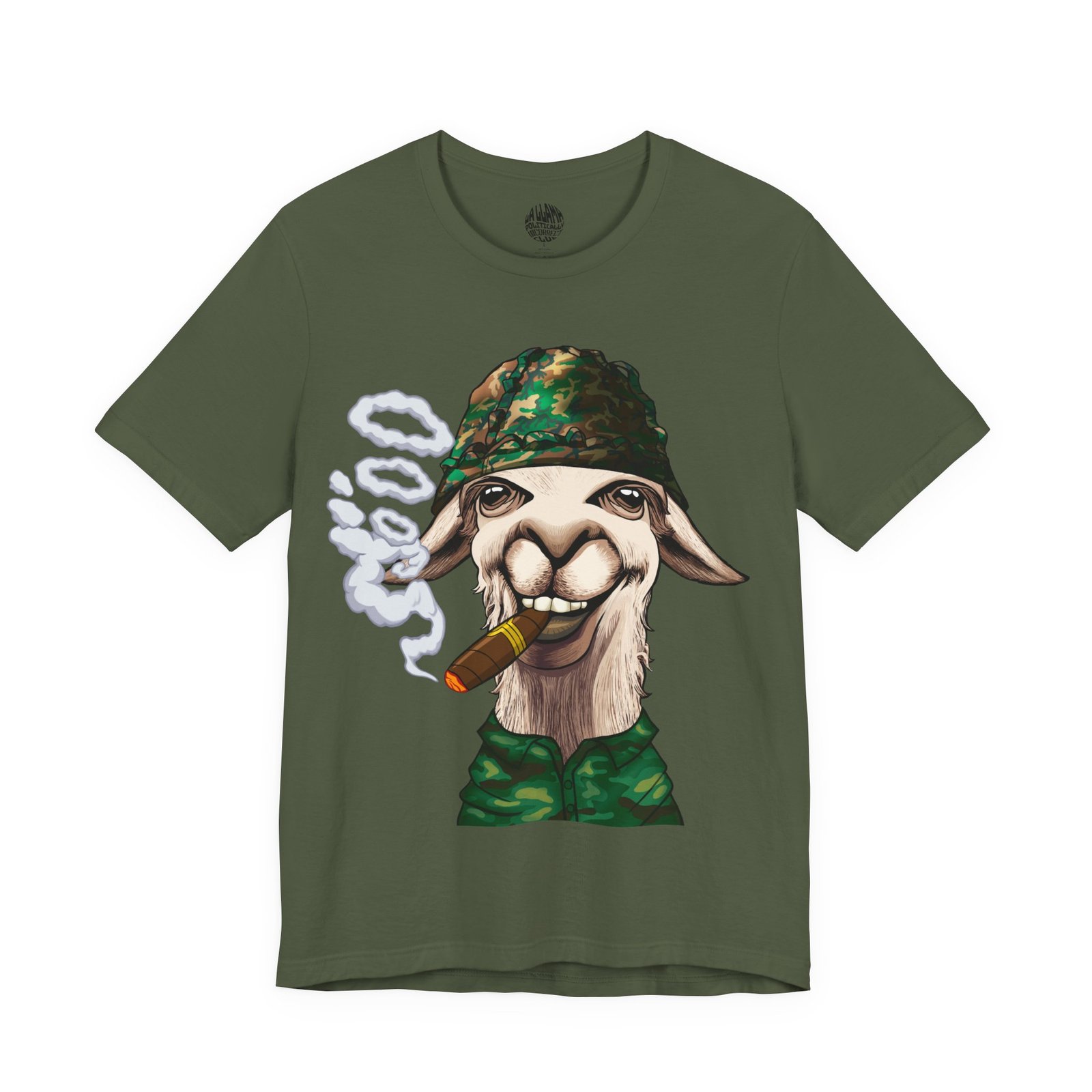 We print this piece of history on premium combed ring-spun cotton at a lightweight 4.2 oz/yd2. Retail fit with a crew neckline and side seams for shape. As a result, it blends in just enough to make the message land harder. Available in Heather Olive and Military Green, sizes S through 2XL. Machine wash cold. Tumble dry low. Above all, this llama’s operation is classified.
