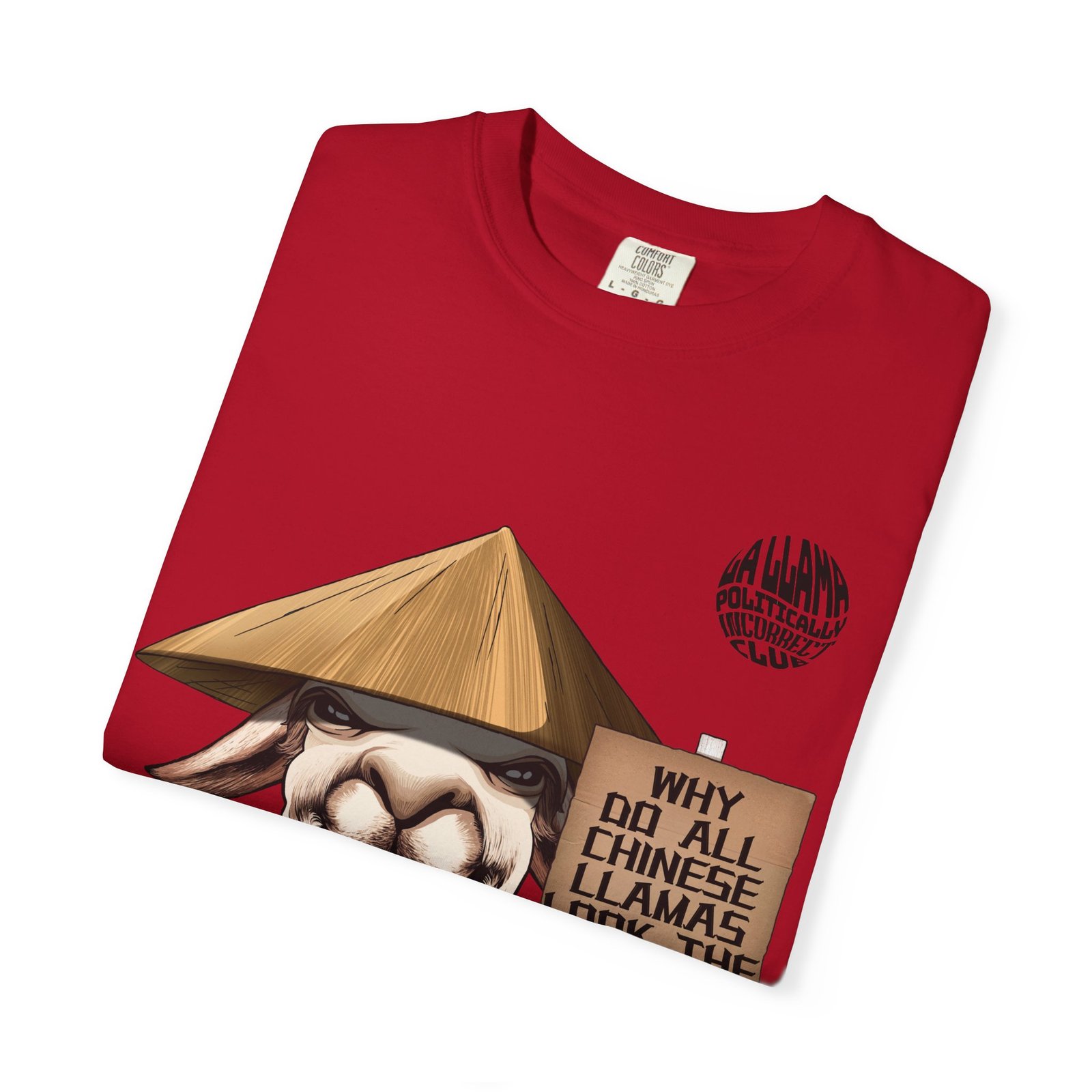 Theme/Features: Playful llama illustration with bold sign, garment-dyed soft texture, heavyweight cotton