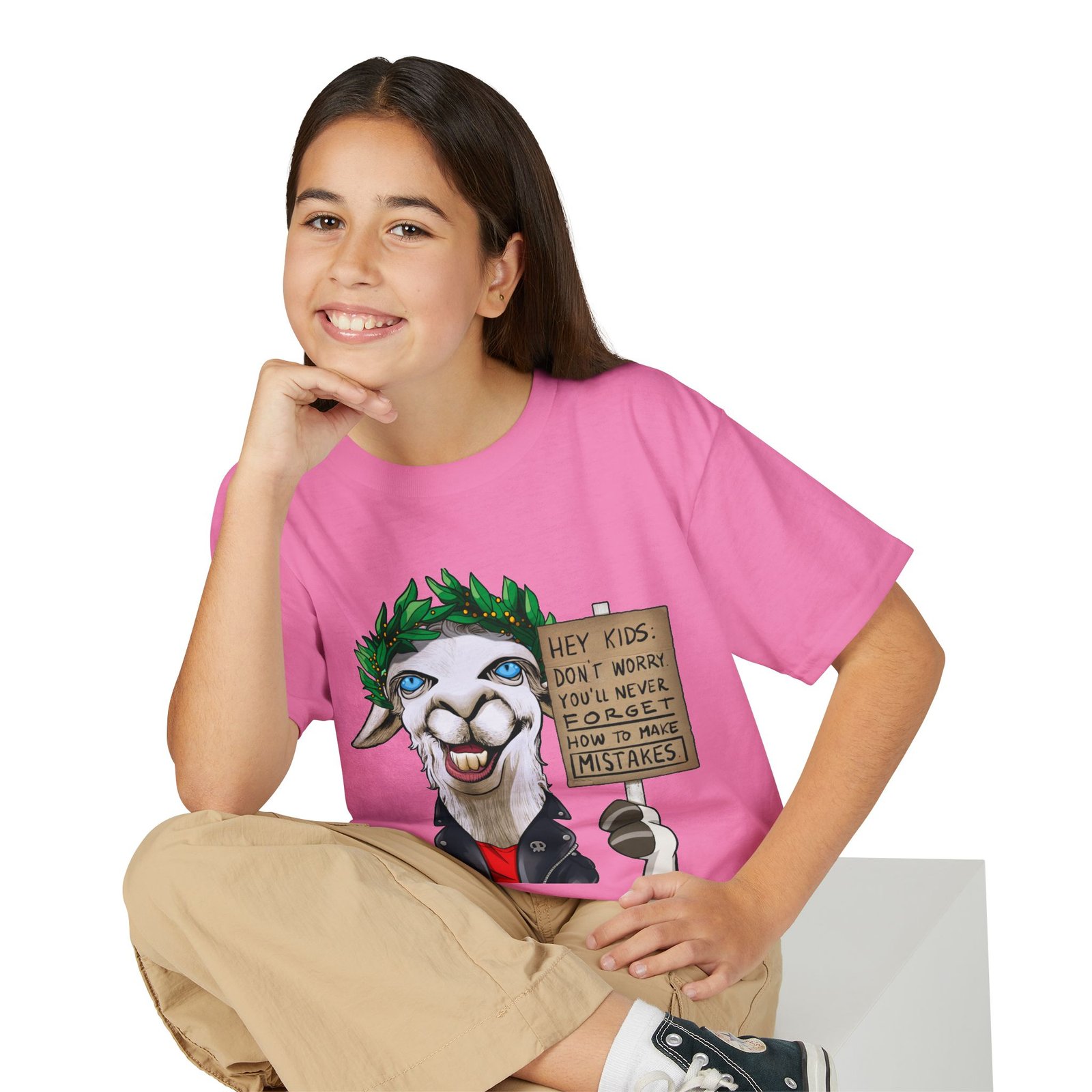 We print this piece of history on DryBlend fabric with a smoother printing surface for vivid designs. Ribbed collar that stretches and returns for a consistent fit. As a result, it survives the schoolyard, the playground, and every mistake along the way. Available in Azalea and Light Blue, sizes S through XL. Machine wash cold. Tumble dry low. Above all, this llama teaches what textbooks won’t.